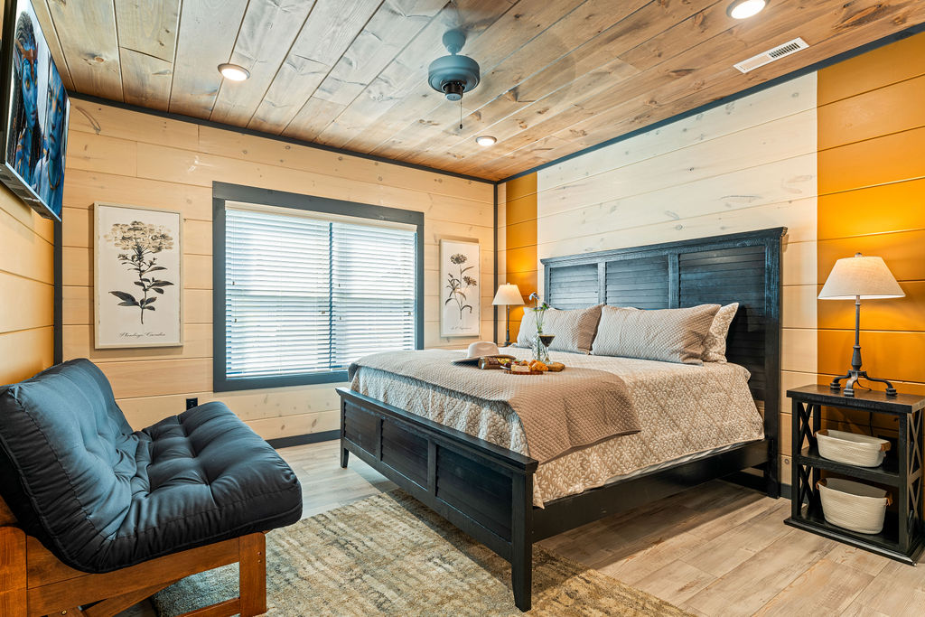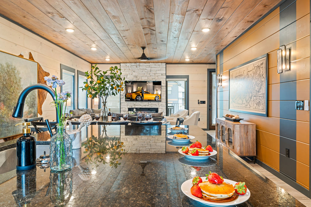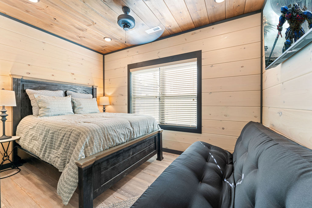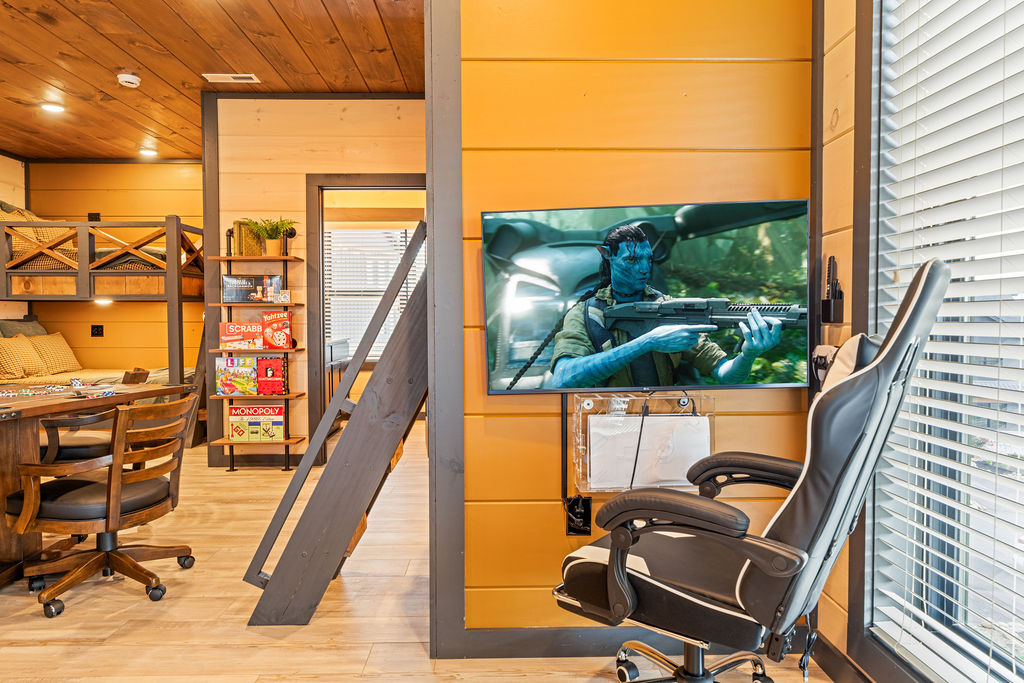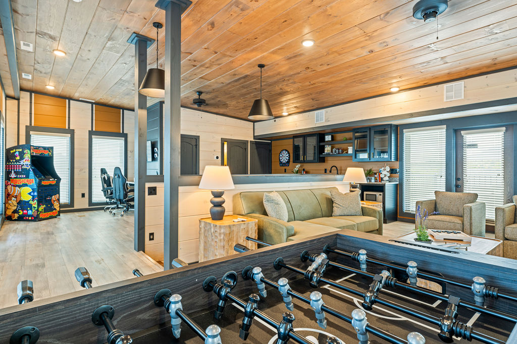 ⭐ Impeccable cabin with modern amenities: Indoor Pool, Sauna, Upscale Home Theater, Game Room, Pool Table ⭐ Exclusive Water Park: Ramling Creek, Mini Golf, Outdoor Movie and many more!