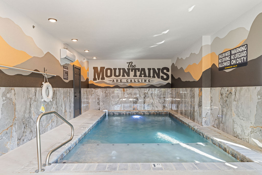 🏊 PRIVATE heated indoor pool inside the cabin (beach towels provided), has a keypad lock and alarm for safety