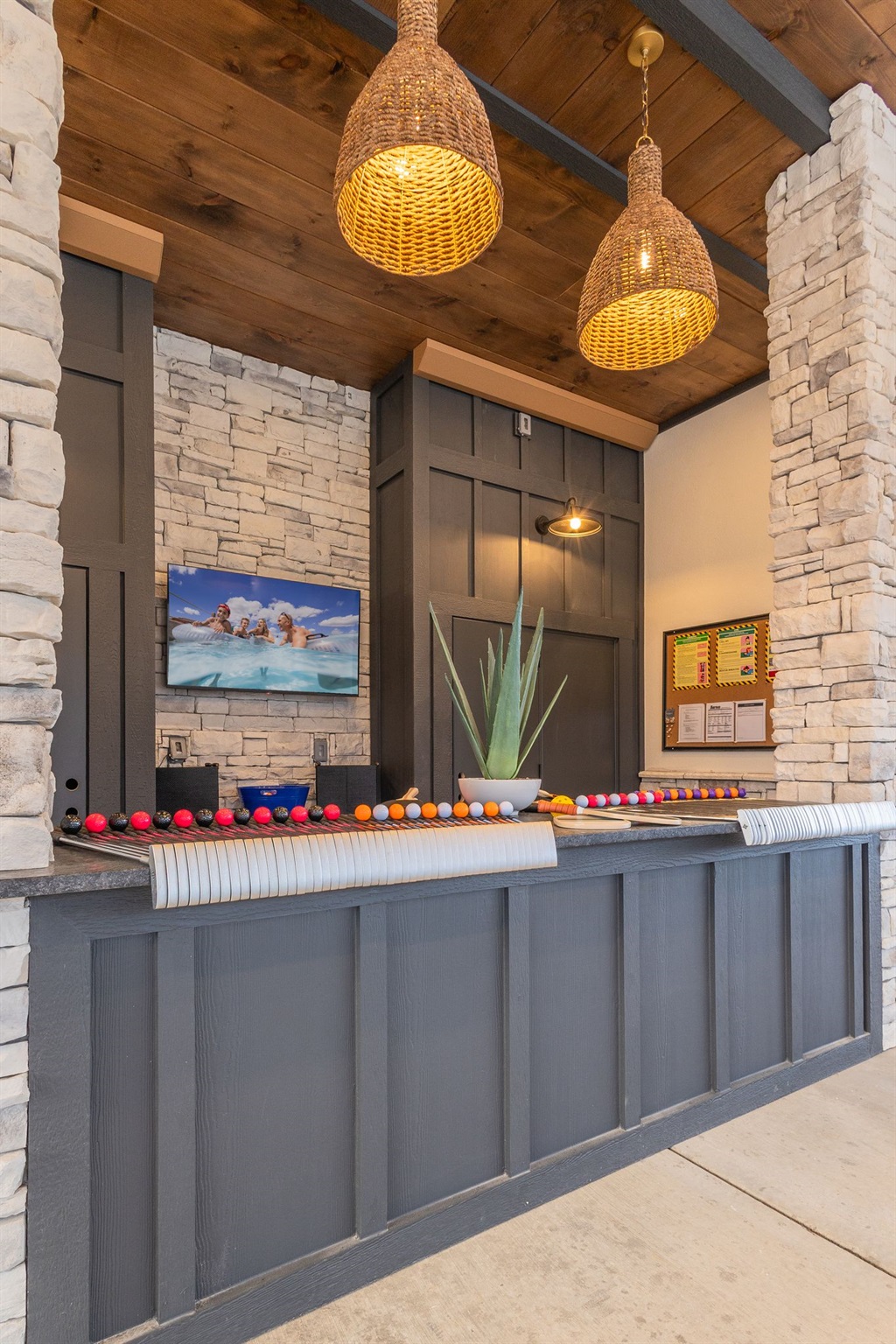 Experience the Smoky Mountains in unmatched style at this luxury estate! Designed by an winning designer, this Ritz-Carlton–inspired retreat is perfect for families, groups, and events. Enjoy endless entertainment with a private indoor pool, arcade games, pool table, and a home theater. Step into the Gatsby-inspired game room, featuring exposed brick and red velvet curtains for 1920s charm. Outdoors, the spacious event-friendly grounds are ideal for weddings, reunions, or celebrations with stunning Smoky Mountain views. A true destination property, this home blends mountain serenity with world-class sophistication