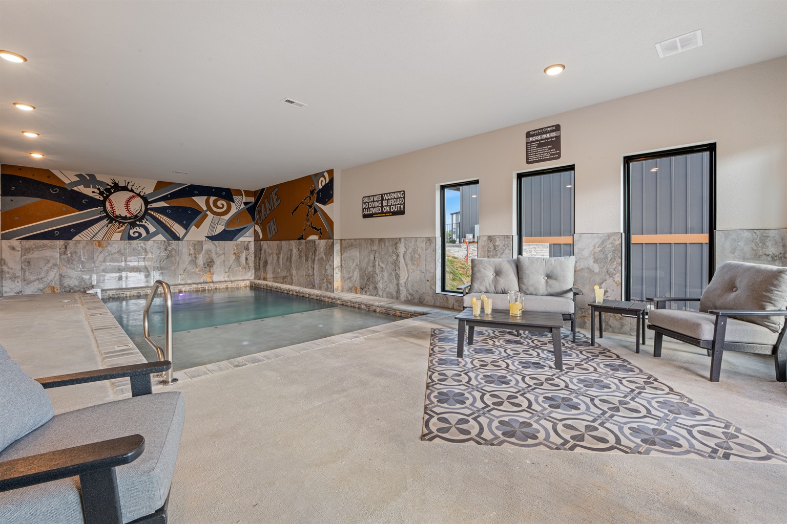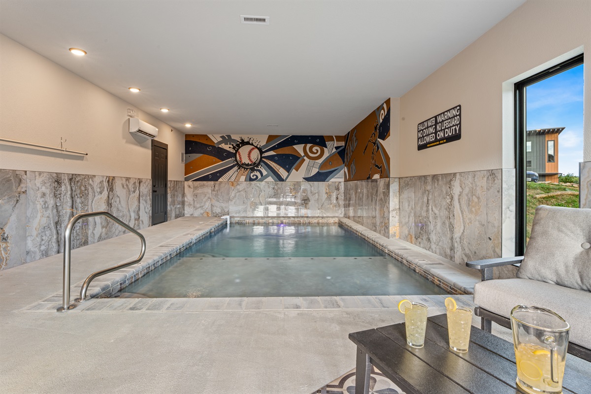 🏊 PRIVATE heated indoor pool inside the cabin (beach towels provided), has a keypad lock and alarm for safety