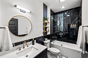 The en-suite bathroom offers a private retreat with modern fixtures and spa-like touches. Enjoy the convenience of direct access from your bedroom, complete with fresh towels, a vanity, and a walk-in shower for ultimate comfort.
